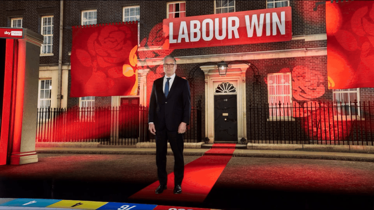 Having use of Sky Sports cutting-edge AR studio allowed us to place our set within a 'virtual' Downing Street, complete with Larry the cat. This innovative setup allowed us to showcase key election night graphics and moments.